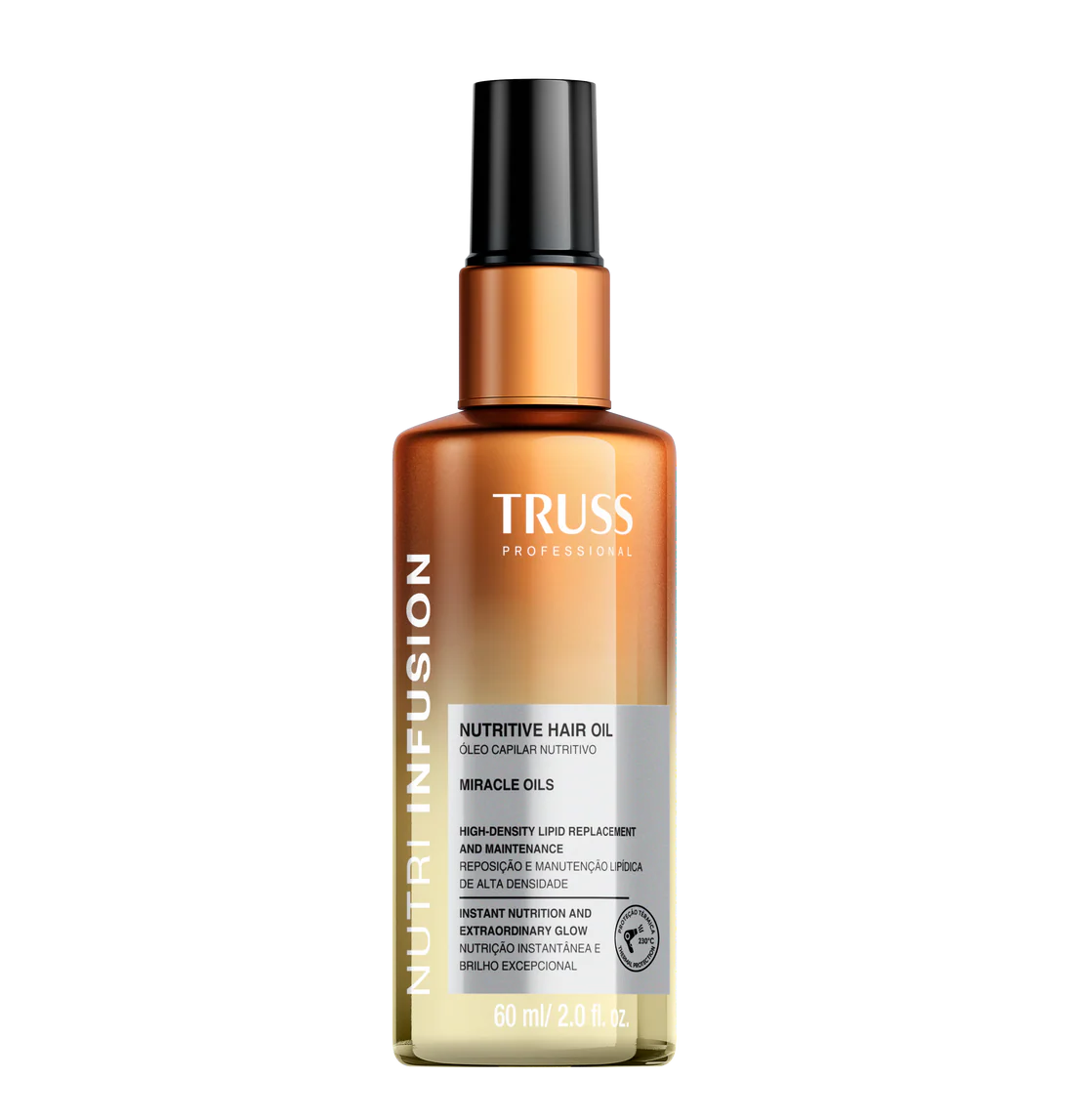 Nutri Infusion Nutritive Hair Oil TRUSS: nutrición intensa, brillo sublime y protección térmica en cada gota.
